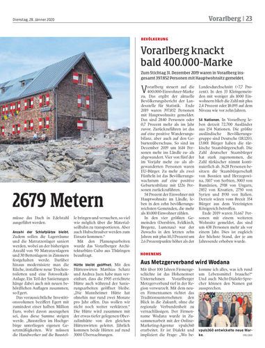 Zum Stichtag 31. Dezember 2019 waren in Vorarlberg insgesamt 397.852 Personen mit Hauptwohnsitz gemeldet.