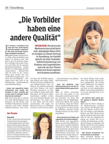 Interview. Die deutsche Medienwissenschaftlerin und -pädagogin Maya Götz ist morgen zu einem Vortrag in Vorarlberg. Im Vorfeld spricht sie über Vorbilder, Selbstinszenierung von Kindern und Jugendlichen und wie sie das Thema Medien bei ihren eigenen drei Kindern handhabt.