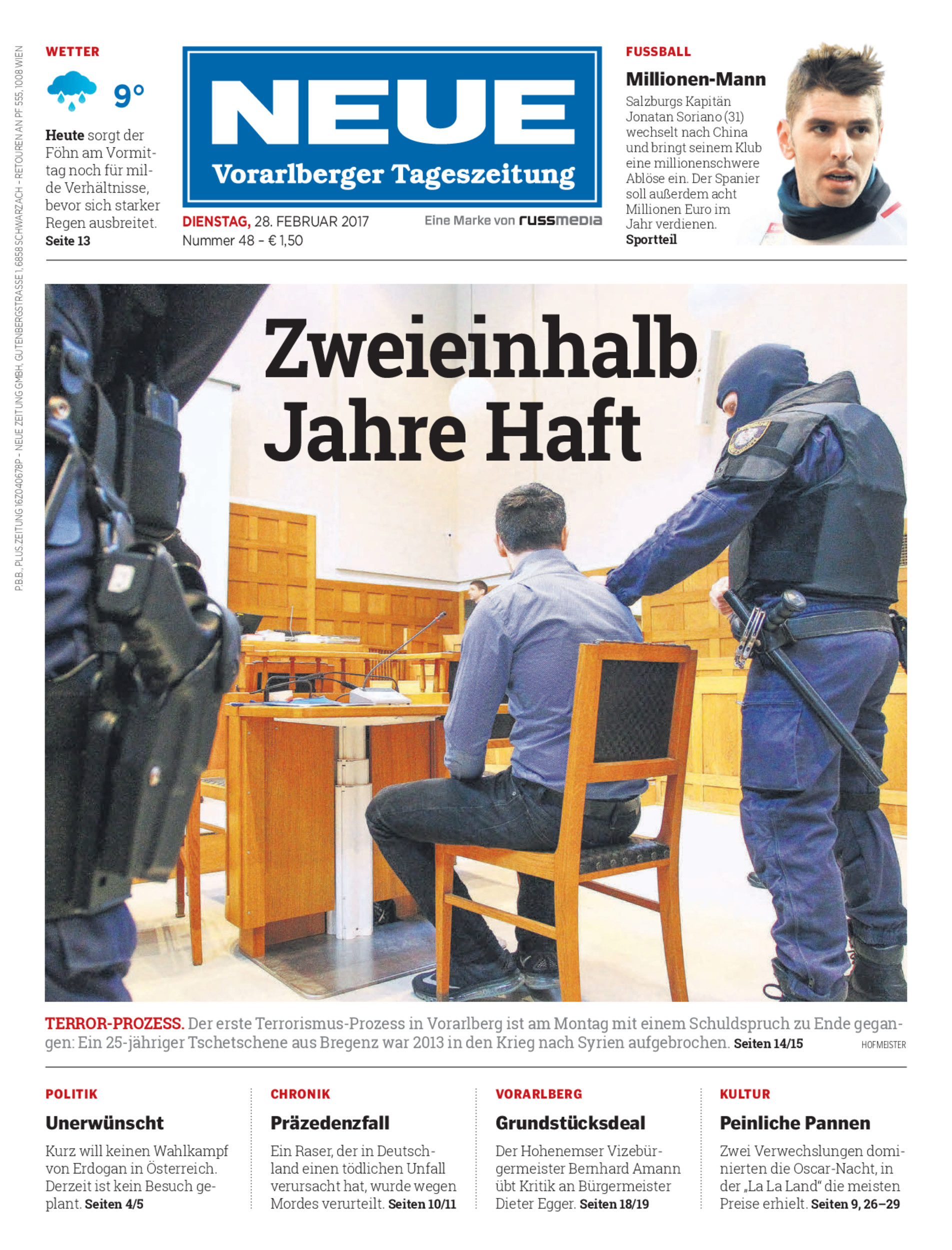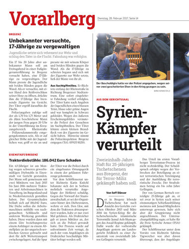 Zweieinhalb Jahre Haft für 25-jährigen Tschetschenen aus Bregenz, der für Terror-Miliz gekämpft haben soll.