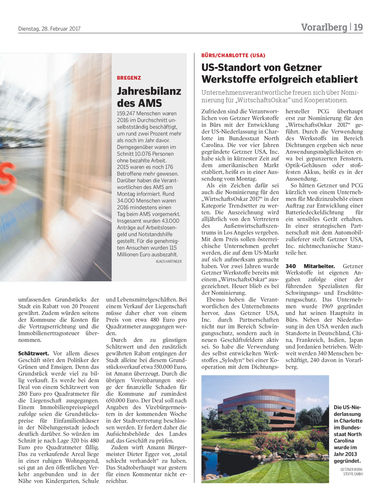 US-Standort von Getzner Werkstoffe erfolgreich etabliert
