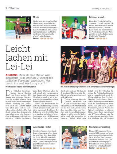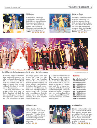ANALYSE. Mehr als eine Million wird sich heute (20.15 Uhr, ORF 2) wieder den „Villacher Fasching“ anschauen. Was macht ihn aus? Wie lustig ist er? Von Marianne Fischer und Helmut Gram