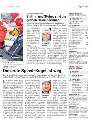 Der Sieg in Crans-Montana ging an US-Star Mikaela Shiffrin. Slowenin Ilka Stuhec gewann die Kombi-Kugel.