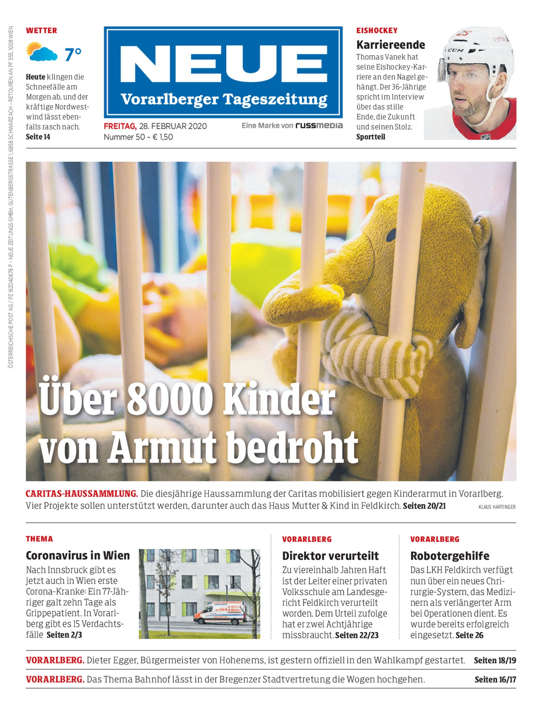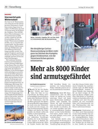 Caritas-Haussammlung. Die diesjährige Haussammlung der Caritas mobilisiert gegen Kinderarmut in Vorarlberg. Vier Projekte sollen unterstützt werden, darunter auch das Haus Mutter & Kind in Feldkirch. Seiten 20/21 Klaus Hartinger