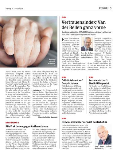 Bundespräsident im APA/OGM-Vertrauensindex vor Kanzler Kurz und Vize Kogler, die gleichauf liegen.