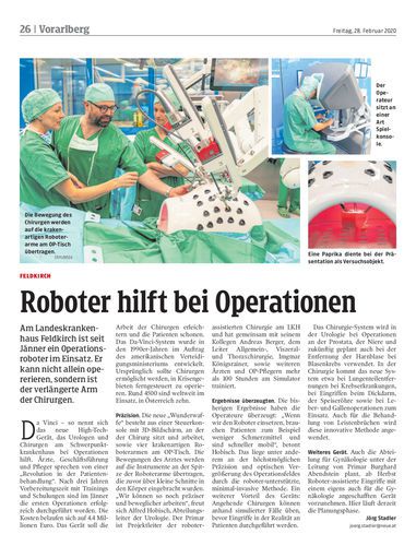 Am Landeskrankenhaus Feldkirch ist seit Jänner ein Operationsroboter im Einsatz. Er kann nicht allein opererieren, sondern ist der verlängerte Arm der Chirurgen.