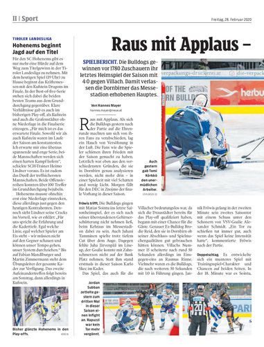 Spielbericht. Die Bulldogs gewinnen vor 1780 Zuschauern ihr letztes Heimspiel der Saison mit 4:0 gegen Villach. Damit verlassen die Dornbirner das Messestadion erhobenen Hauptes.