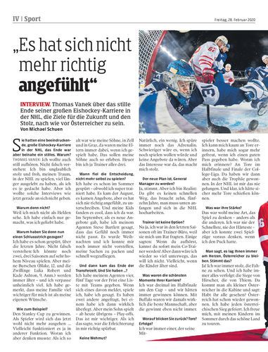 Thomas Vanek über das stille Ende seiner großen Eishockey-Karriere in der NHL, die Ziele für die Zukunft und den Stolz, nach wie vor Österreicher zu sein. Von Michael Schuen