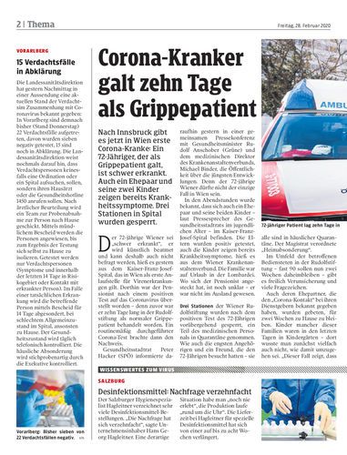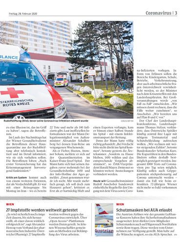 Nach Innsbruck gibt es jetzt in Wien erste Corona-Kranke: Ein 72-Jähriger, der als Grippepatient galt, ist schwer erkrankt. Auch ein Ehepaar und seine zwei Kinder zeigen bereits Krankheitssymptome. Drei Stationen in Spital wurden gesperrt.