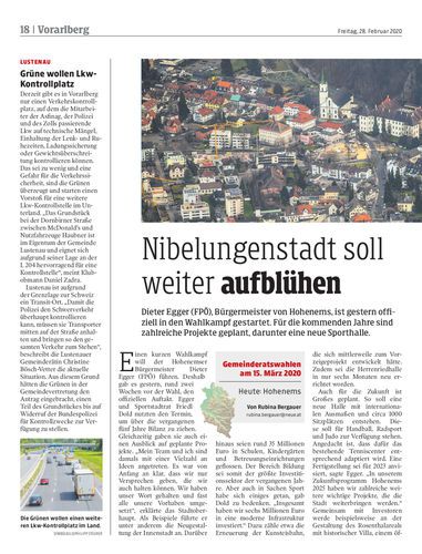 Dieter Egger (FPÖ), Bürgermeister von Hohenems, ist gestern offiziell in den Wahlkampf gestartet. Für die kommenden Jahre sind zahlreiche Projekte geplant, darunter eine neue Sporthalle.
