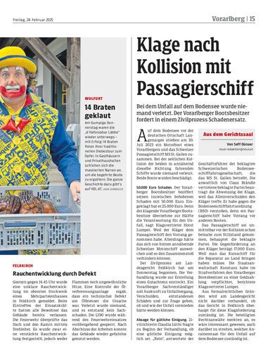 Bei dem Unfall auf dem Bodensee wurde niemand verletzt. Der Vorarlberger Bootsbesitzer fordert in einem Zivilprozess Schadenersatz.