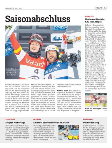 Alessandro Hämmerle und Markus Schairer siegen beim letzten Weltcup-Bewerb der Saison, dem Teambewerb im Snowboardcross in Veysonnaz.