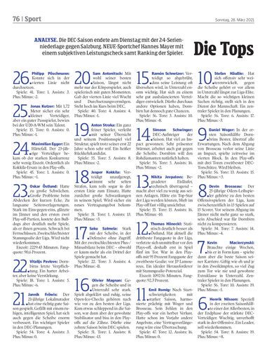 Analyse. Die DEC-Saison endete am Dienstag mit der 2:4-Serienniederlage gegen Salzburg. NEUE-Sportchef Hannes Mayer mit einem subjektiven Leistungscheck samt Ranking der Spieler.