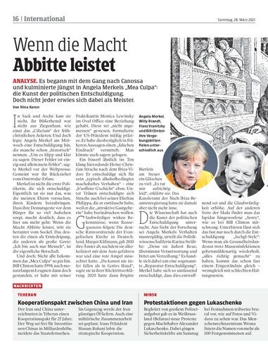 ANALYSE. Es begann mit dem Gang nach Canossa und kulminierte jüngst in Angela Merkels „Mea Culpa“: die Kunst der politischen Entschuldigung. Doch nicht jeder erwies sich dabei als Meister. Von Nina Koren