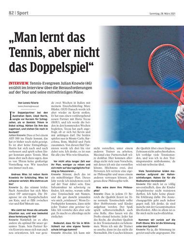 Interview. Tennis-Evergreen Julian Knowle (46) erzählt im Interview über die Herausforderungen auf der Tour und seine mittelfristigen Pläne.