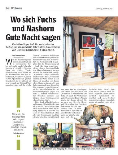 Christian Jäger ließ für sein privates Refugium ein rund 200 Jahre altes Bauernhaus von Osttirol nach Seefeld umsiedeln.