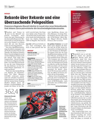 Francesco Bagnaia (Ducati) drehte in Losail eine neue Rekordrunde. Und Johann Zarco pulverisierte die Geschwindigkeitsbestmarke.