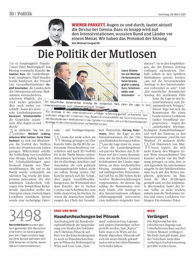 WIENER PARKETT. Augen zu und durch, lautet aktuell die Devise bei Corona. Dass es knapp wird auf den Intensivstationen, wussten Bund und Länder vor einem Monat. Wir haben das Protokoll der Sitzung. Von Michael Jungwirth