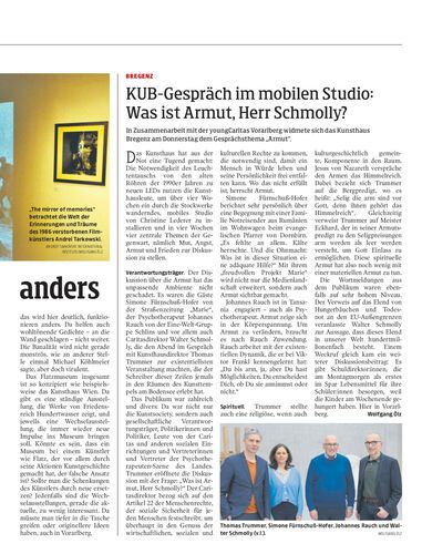 In Zusammenarbeit mit der youngCaritas Vorarlberg widmete sich das Kunsthaus Bregenz am Donnerstag dem Gesprächsthema „Armut“.