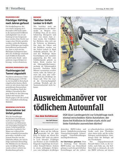 OGH lässt Landesgericht zur Schuldfrage noch einmal entscheiden: Hätte Autofahrer, der dann bei Kollision in Stuben starb, nicht auf linke Fahrbahn ausweichen dürfen?