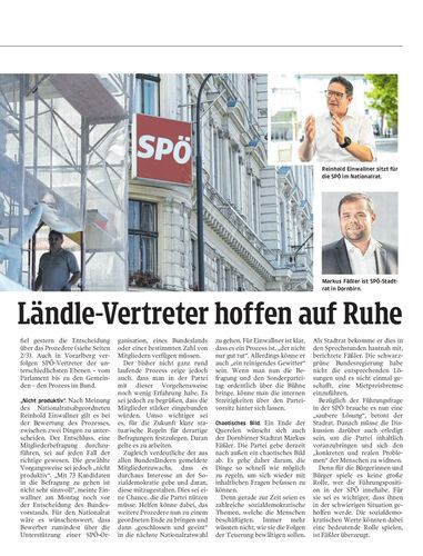 SPÖ: Ländle-Vertreter hoffen auf Ruhe