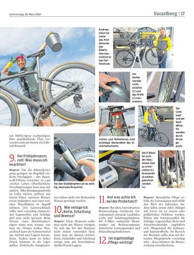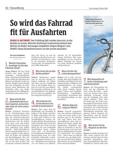 Frage & Antwort. Der Frühling lädt wieder dazu ein, in die Pedale zu treten. Manche Drahtesel verbrachten jedoch den Winter im Keller. Deswegen empfiehlt Jürgen Wagner vom ÖAMTC einen Sicherheitscheck vor der ersten Ausfahrt.
