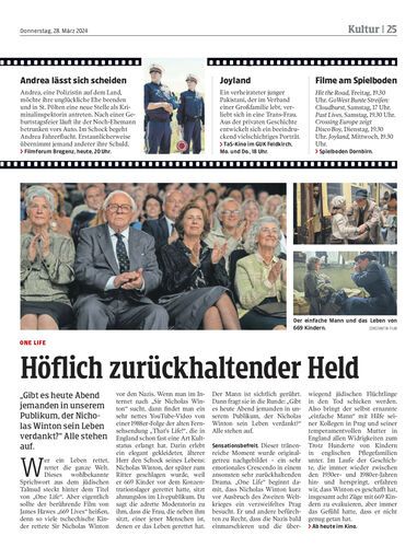 „Gibt es heute Abend jemanden in unserem Publikum, der Nicholas Winton sein Leben verdankt?“ Alle stehen auf.