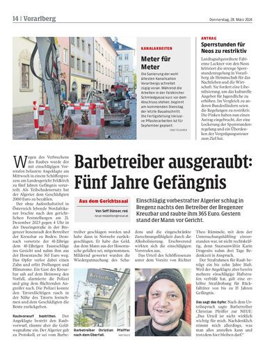 Einschlägig vorbestrafter Algerier schlug in Bregenz nachts den Betreiber der Bregenzer Kreuzbar und raubte ihm 365 Euro. Gestern stand der Mann vor Gericht.