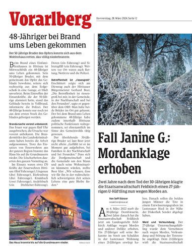 Zwei Jahre nach dem Tod der 30-Jährigen klagte die Staatsanwaltschaft Feldkirch einen 27-jährigen U-Häftling nun wegen Mordes an.