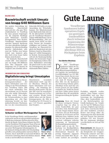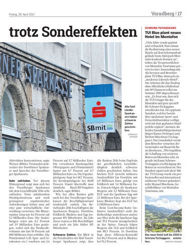 Vorarlberger Sparkassen haben operatives Ergebnis gesteigert. Sondereffekte durch teilweise Anpassung der Bilanzierungsmethode führten allerdings 2016 zu Rückgängen beim Ergebnis.