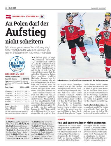 Mit einer grandiosen Vorstellung siegt Österreich bei der WM der Division 1A gegen Südkorea 5:0. Heute wartet Polen.