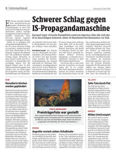 Europol legte virtuelle Kampflinie rund um Agentur, über die sich der IS zu Anschlägen bekennt, lahm. IS-Bastionen bei Damaskus vor Fall.