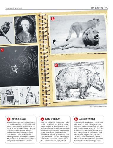 Sie schrieben echt – schräge – Geschichte(n): vom kopflosen Hahn bis zur ersten Spinne im All. Geschichten über Tiere, die vermutlich mehr über den Menschen aussagen. Von Susanne Rakowitz