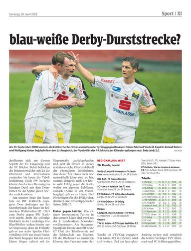 Feldkirch gelang der letzte Heimerfolg gegen Rankweil am 13. September 2008. Heute wird im Waldstadion (17 Uhr) der nächste Versuch unternommen. In der Regionalliga sind heute drei Ländle-Klubs im Einsatz.