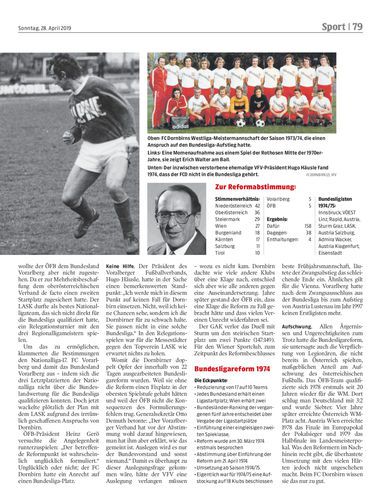 Am 21. April 1974 beschlossen die Landesverbände bei einer ÖFB-Generalversammlung eine große Ligareform. Obwohl der Reformvorschlag unpräzise ausgearbeitet war. Dem FC Dornbirn wäre ein Platz in der Bundesliga zugestanden, der VFV schlug sich aber auf die Seite des ÖFB.