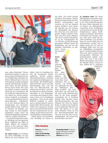 Seit dem vergangenen Wochenende pfeift Felix Ouschan in der Fußball-Bundesliga. Damit eifert er seinem Bruder Dominik Ouschan nach. Der finanzielle Anreiz spielt für die Schiedsrichter eine nebensächliche Rolle.