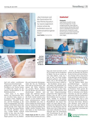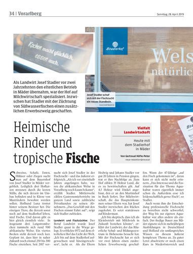 Als Landwirt Josef Stadler vor zwei Jahrzehnten den elterlichen Betrieb in Mäder übernahm, war der Hof auf Milchwirtschaft spezialisiert. Inzwischen hat Stadler mit der Züchtung von Süßwasserfischen einen zusätzlichen Erwerbszweig geschaffen.