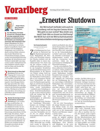 Die Wirtschaft befindet sich auch in Vorarlberg voll im Sog der Corona-Krise. Wie geht es nun weiter? Was droht uns noch? Und: Gibt es Grund zur Hoffnung? Die NEUE hat sich bei Wirtschaftskammer und Industriellenvereinigung umgehört.
