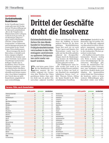 Existenzbedrohende Zeiten für den Modehandel in Vorarlberg. Frühjahrskollektionen verstauben in den Warenlagern und können zu späteren Zeitpunkten nicht mehr verkauft werden.