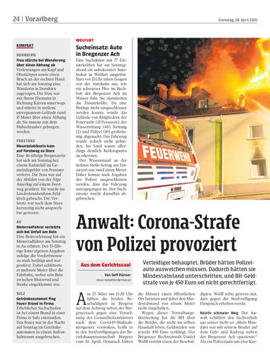 Verteidiger behauptet, Brüder hätten Polizeiauto ausweichen müssen. Dadurch hätten sie Mindestabstand unterschritten, und BH-Geldstrafe von je 450 Euro sei nicht gerechtfertigt.
