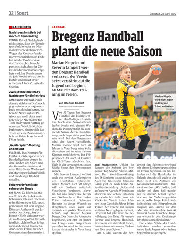 Marian Klopcic und Severin Lampert werden Bregenz Handball verlassen, der Verein setzt verstärkt auf die Jugend und beginnt ab Mai mit dem Training im Freien.