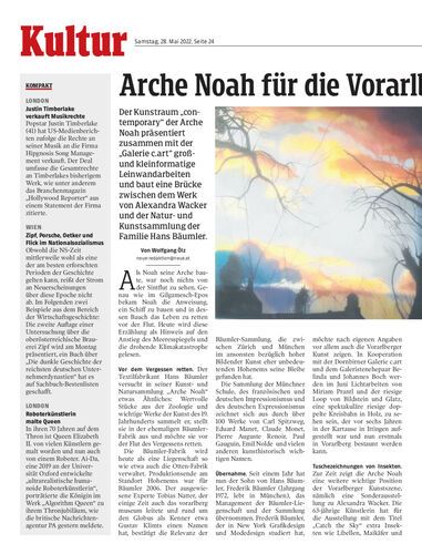 Der Kunstraum „contemporary“ der Arche Noah präsentiert zusammen mit der „Galerie c.art“ groß- und kleinformatige Leinwandarbeiten und baut eine Brücke zwischen dem Werk von Alexandra Wacker und der Natur- und Kunstsammlung der Familie Hans Bäumler.