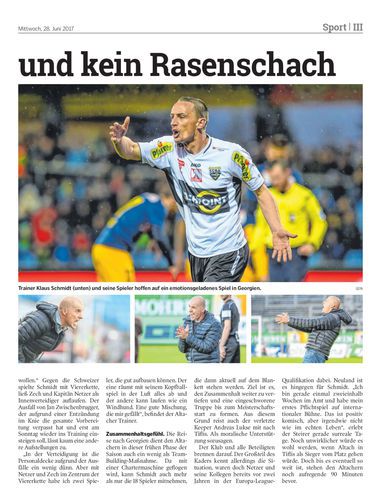 Der Trainer und sein Stürmer treffen sich einen Tag vor dem ersten Pflichtspiel in Tiflis zum ersten Mal.