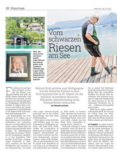 Helmut Kohl gehörte zum Wolfgangsee wie die deutsche Einheit zu ihm: Eine Spurensuche in St. Gilgen, wo der kürzlich verstorbene deutsche Altkanzler jahrzehntelang seine Sommerferien verbrachte. Von Manuela Swoboda