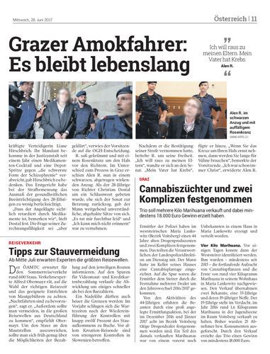 Wiener Oberlandesgericht bestätigte Strafhöhe für Alen R. Dieser trug Rosenkranz um den Hals.