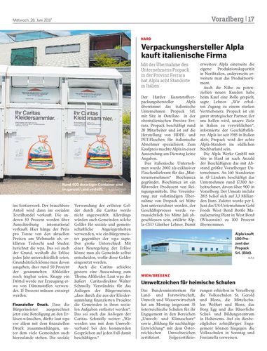 Mit der Übernahme des Unternehmens Propack in der Provinz Ferrara hat Alpla acht Standorte in Italien.