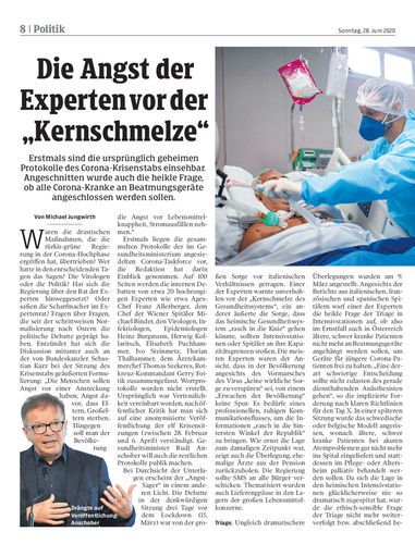 Erstmals sind die ursprünglich geheimen Protokolle des Corona-Krisenstabs einsehbar. Angeschnitten wurde auch die heikle Frage, ob alle Corona-Kranke an Beatmungsgeräte angeschlossen werden sollen.