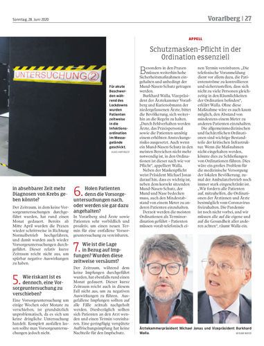 Frage & Antwort. Die Coronavirus-Krise hatte in Vorarlberg Auswirkungen auf die Krankenstände. Es wurden auch weniger Vorsorgeuntersuchungen getätigt. Die sollten jetzt nachgeholt werden. Ein Überblick.