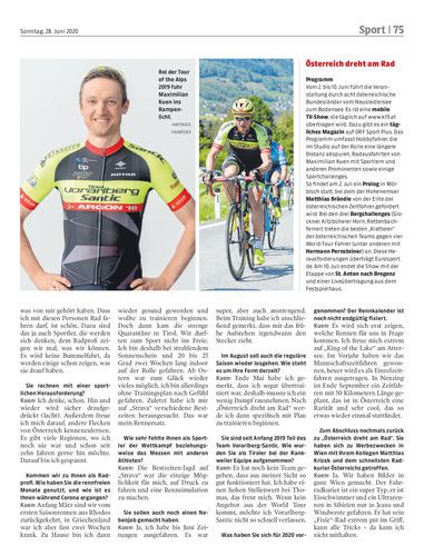 Interview. Maximilian Kuen fährt seit 2019 für das Team Vorarlberg-Santic. Während der Corona-Pause fuhr er Zeitungen aus – ab dem