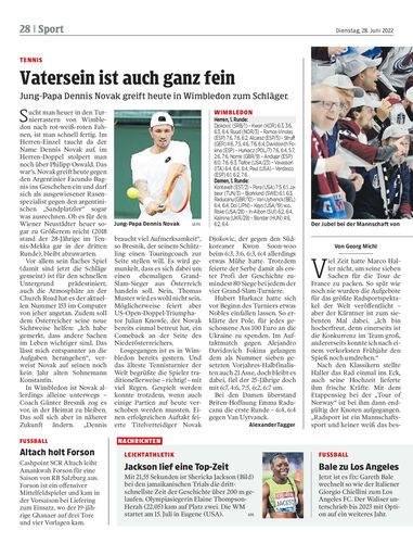 Jung-Papa Dennis Novak greift heute in Wimbledon zum Schläger.