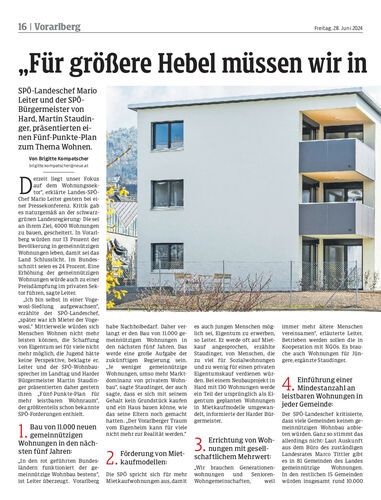 SPÖ-Landeschef Mario Leiter und der SPÖ-Bürgermeister von Hard, Martin Staudinger, präsentierten einen Fünf-Punkte-Plan zum Thema Wohnen.